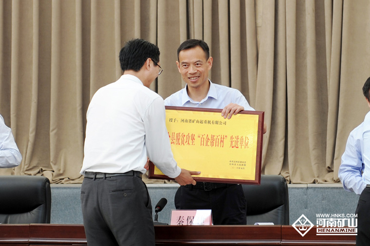 2018年5月9日下午,長(zhǎng)垣縣召開(kāi)“長(zhǎng)垣縣脫貧攻堅(jiān)第七次推進(jìn)會(huì)議”,會(huì)議表彰了在扶貧攻堅(jiān)工作中做出突出貢獻(xiàn)的集體和個(gè)人,河南礦山獲得“全縣脫貧攻堅(jiān)百企幫百村先進(jìn)單位”稱(chēng)號(hào)。