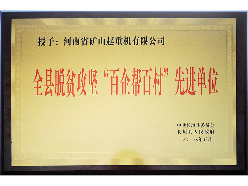2018年5月9日下午,長垣縣召開“長垣縣脫貧攻堅第七次推進會議”,會議表彰了在扶貧攻堅工作中做出突出貢獻的集體和個人,河南礦山獲得“全縣脫貧攻堅百企幫百村先進單位”稱號。