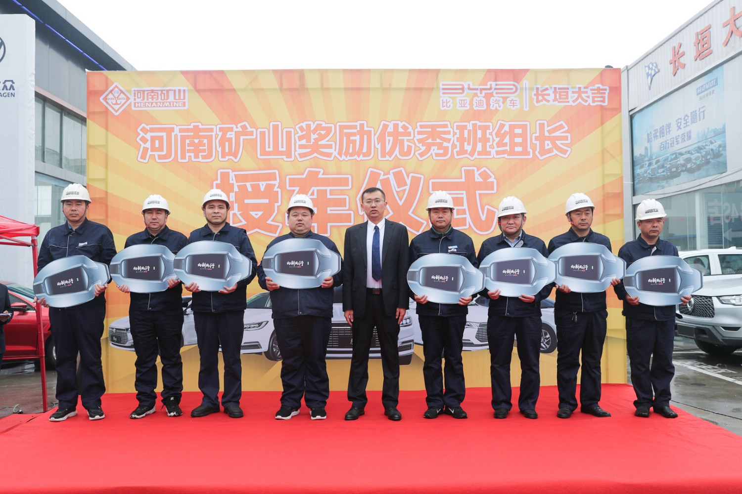 3月11日,河南礦山獎(jiǎng)勵(lì)**班組長授車儀式在長垣大地亞飛汽車城內(nèi)隆重舉行。公司24名一線**員工得以重獎(jiǎng),每人獲得一輛純電動比亞迪全新秦EV。據(jù)悉,該批車市場總價(jià)值420余萬元。